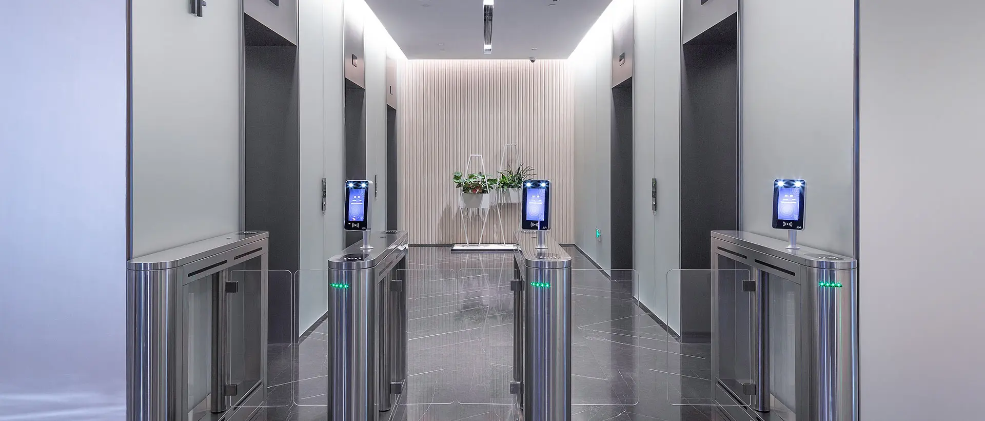Smart entry solutions for office buildings and corporate campuses, combining multiple credentials such as cards, mobile QR, and face recognition to create a modern, seamless experience.